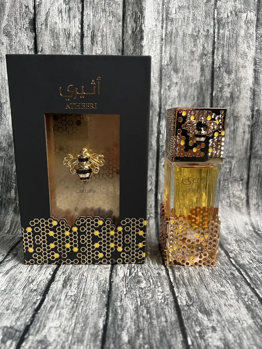 Atheeri de Lattafa Perfumes es una fragancia de la familia olfativa Oriental Floral para Mujeres. Esta fragrancia es nueva. Las Notas de Salida son flor de pasionaria y Gota del rocío; las Notas de Corazón son orquídea y jazmín; las Notas de Fondo son vainilla y Amberwood.