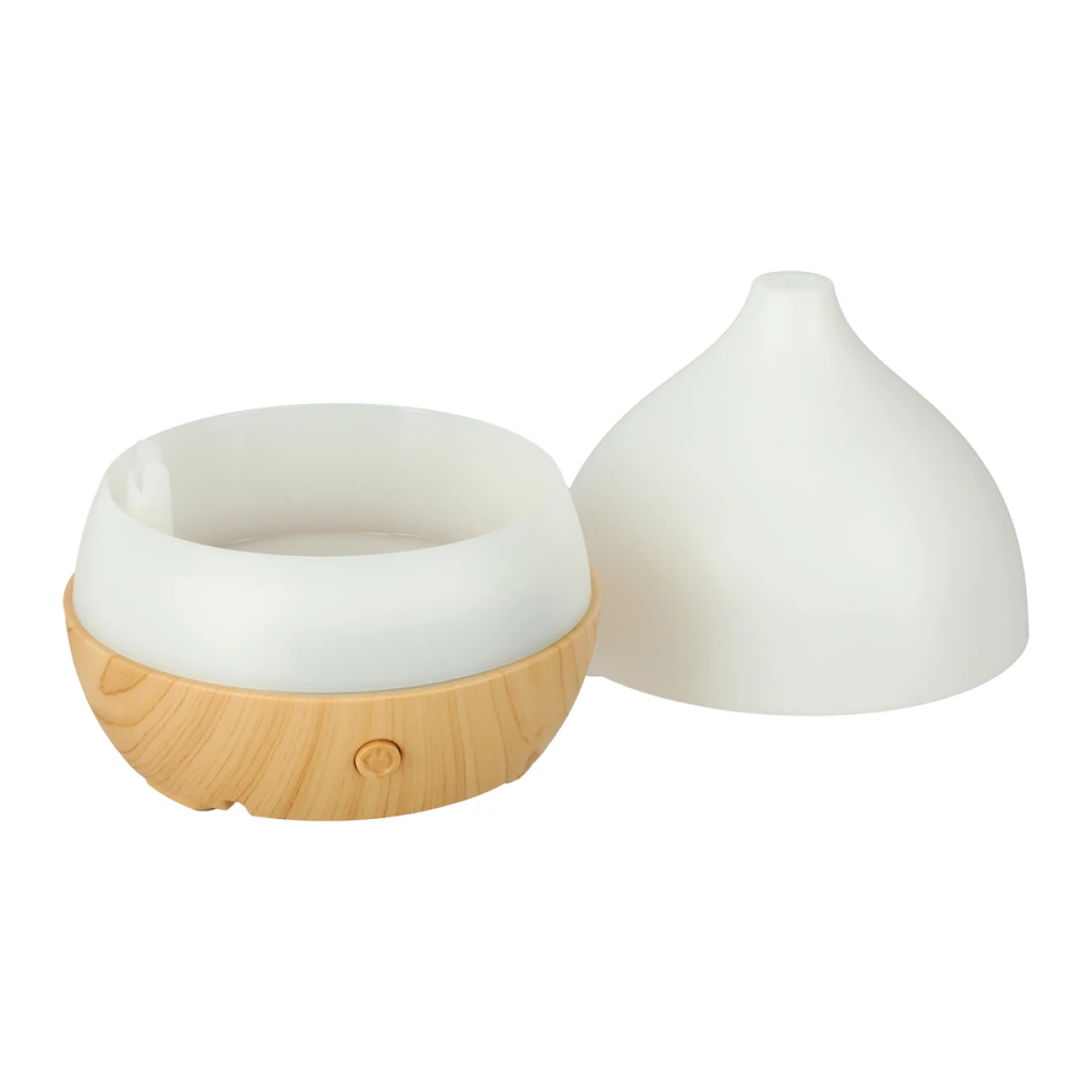 Difusor de aroma con funcionamiento por USB. Se puede usar como humidificador de aire o usar con aceite para aromatizar ambientes. Tiene una capacidad de 80 ml. Incluye instrucciones de uso.