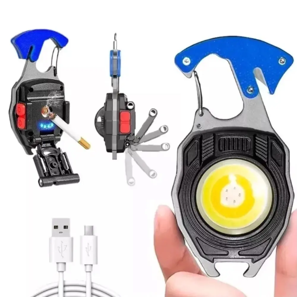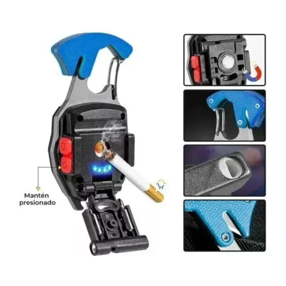 2. Multifunción: actualizar el núcleo de iluminación de tres colores/Apertura de botella/encendedor de cigarrillos/cuchillo de corte/magnetismo fuerte/silbato de supervivencia/clip de bolígrafo/ligero y compacto.