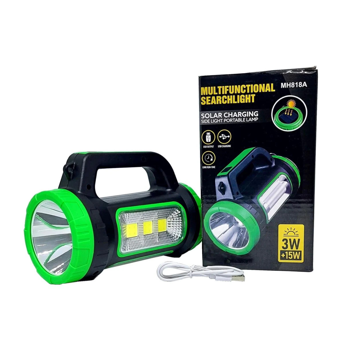 Linterna a batería con panel solar solar MH818 con función Powerbank Negro/Verde