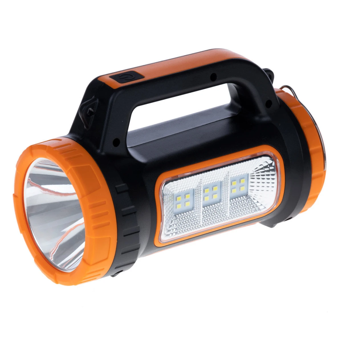 La linterna portátil con la función de Power Bank Solar MH818 será un asistente útil en casa, de vacaciones y en el trabajo. La linterna da una luz muy brillante y un conector USB para cargar un teléfono inteligente es una buena ventaja. El cuerpo está hecho de plástico de alta calidad. Tiene un asa conveniente para llevar. Alimentado por una batería incorporada que se puede cargar desde un tomacorriente de 220 V o usando un panel solar ubicado en la parte posterior del proyector. La batería de la linterna tiene una capacidad de 2000 mAh, que es suficiente para que la linterna brille hasta 5 horas. Y en el mango hay una salida USB, a la que puede conectar dispositivos portátiles móviles para su recarga.