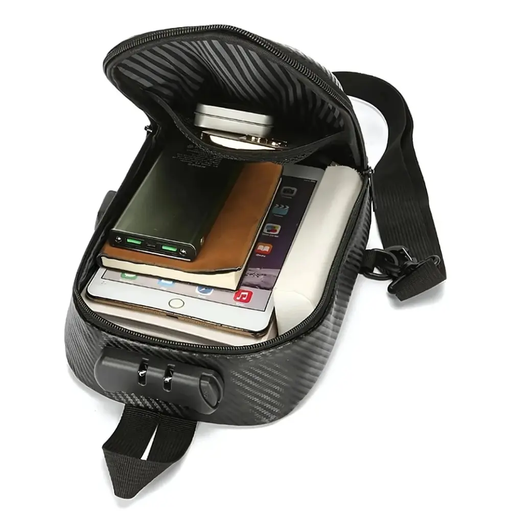 La compañera ideal para quienes buscan seguridad y funcionalidad. Esta mochila bandolera cuenta con sistema antirrobo integrado con candado, cremalleras ocultas y material resistente a cortes, pensada para proteger tus pertenencias en todo momento.