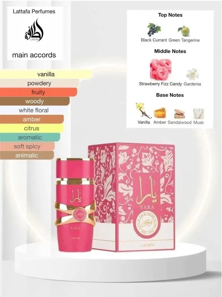 Presentamos Yara Candy de Lattafa, una adición de caramelos azucarados a la familia Yara. Elaborado con los mejores ingredientes del corazón de Oriente Medio, Yara Candy es una mezcla armoniosa de deliciosas frutas confitadas y delicioso jarabe de vainilla. La fragancia se abre con una explosión de jugosas frutas de mandarina verde y grosella negra, que conducen a un corazón de floreciente Gardenia y Strawberry Fizz Candy. Este exquisito aroma es perfecto para aquellos que aprecian el encanto de una fragancia bien equilibrada y sofisticada.